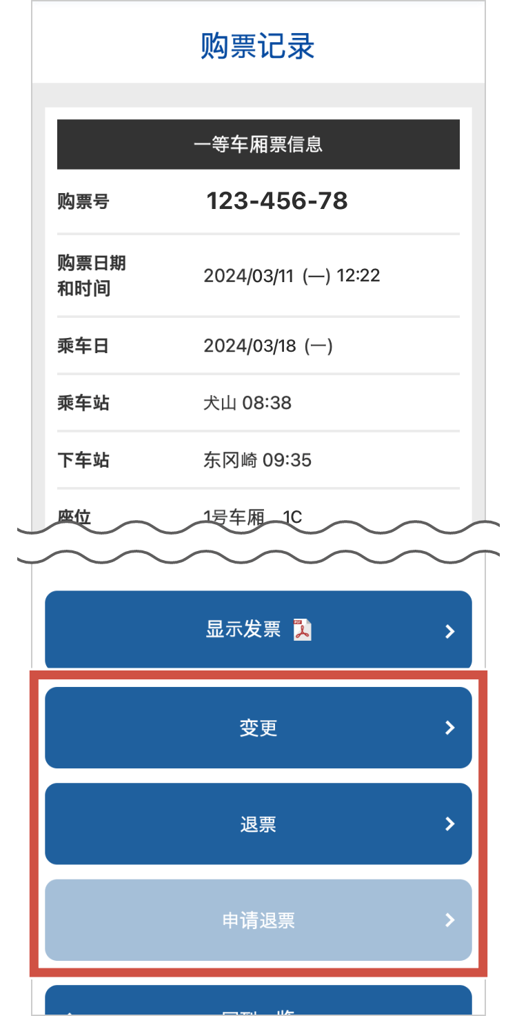 请从购票记录选择希望确认、变更、退票的特别车车票。